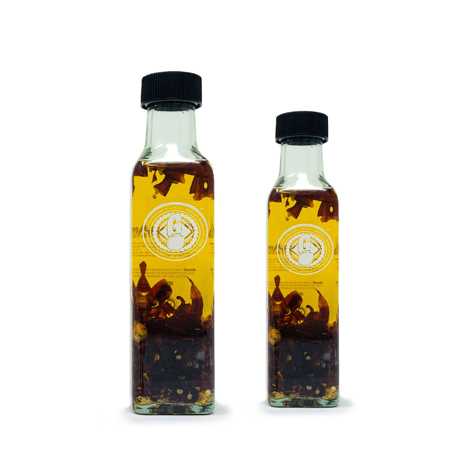 Attenzione! Olio with chilli get very spicy when long time. First try. Then use very you like, particolarmente with pizza or pasta. We dry chilli with sea salt in Australia, Kings Cross for location.